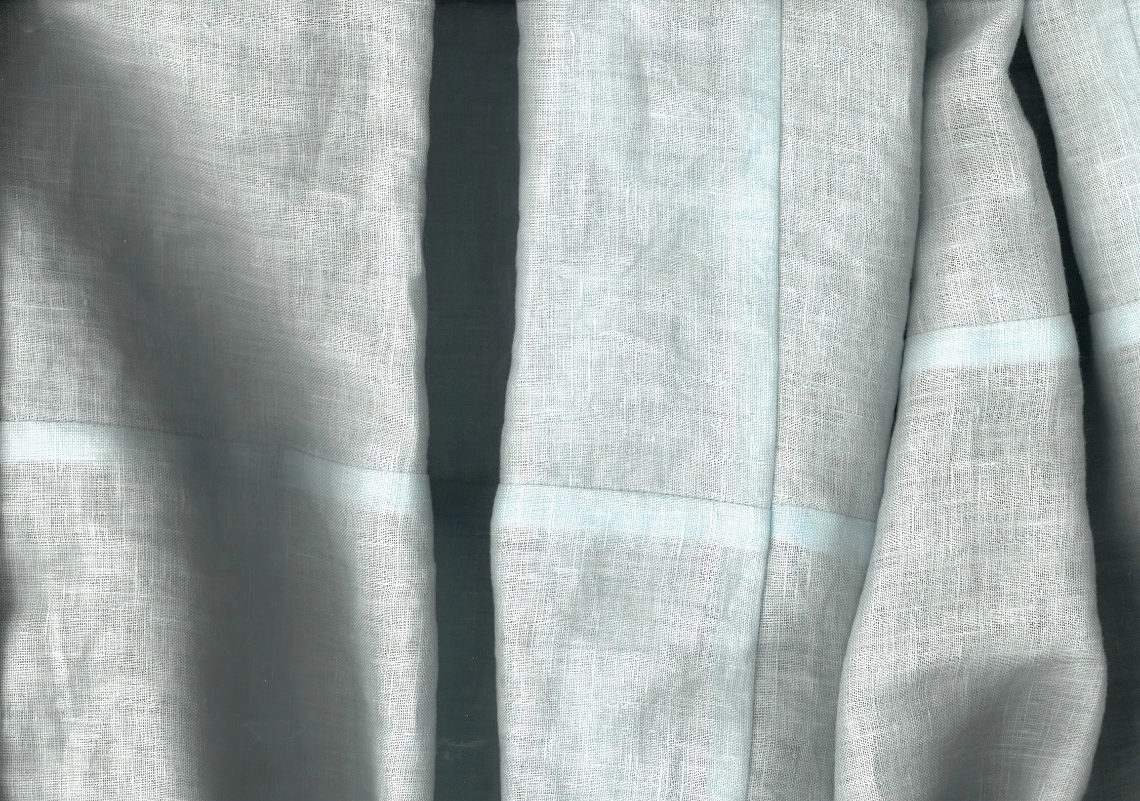 2022, linen dyed with Truvada (PrEP), polyester thread, 430 x 110cm.